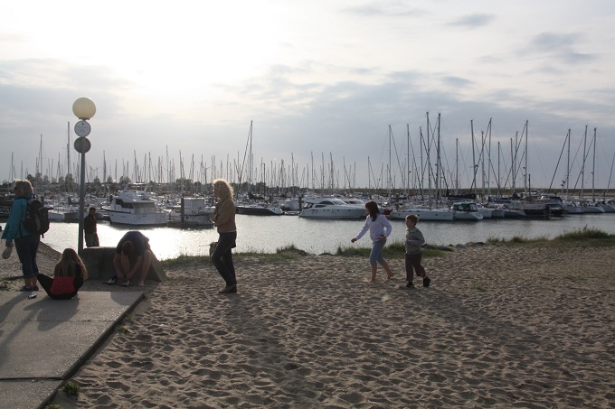 Der Hafen hat eine super Ausstattung. Direkt daneben ist ein langer Sandstrand.