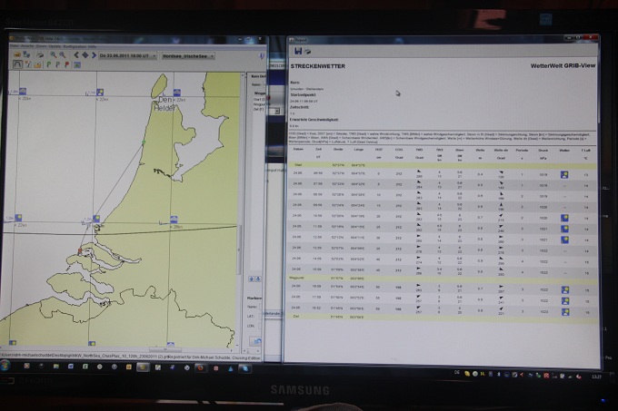 Der Wetterbericht ist grenzwertig: 4 Bft. Wind, aber 5-6 und dann 6 Bft. die Böen. Außerdem müssen wir mit der Welle rechnen, die sich aufgrund der Sturmtage in den letzten Tagen aufbaute.