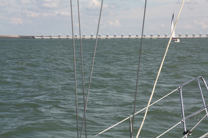 Nach 8 sm Anfahrt in die Bucht erreichten wir das Sperrwerk, mit dem die Oosterschelde gegenüber der Nordsee getrennt wird.