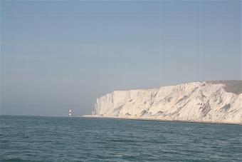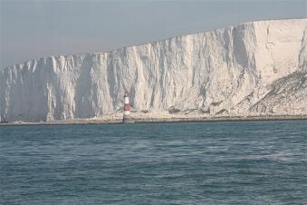 Das Wetter ist soweit schön, aber heute Morgen noch ziemlich diesig. Die Sonne scheint zwar hindurch, aber die Sicht ist doch begrenzt. Obwohl es so den ganzen Tag bleibt, haben wir beeindruckende Sicht auf die Küste. Die Kreidefelsen sind jedenfalls weniger bekannt aber wir empfinden, beeindruckender als die von Dover.