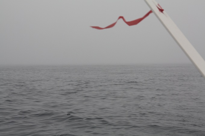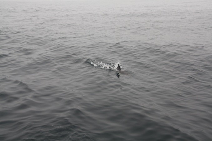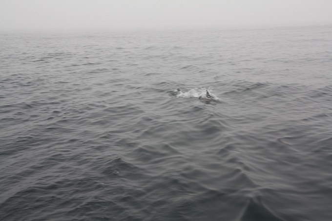 Als wir weit genug draußen auf See sind, lichtet sich der Nebel. Es dauert nicht lange und uns begleiten wieder einige Delphine.