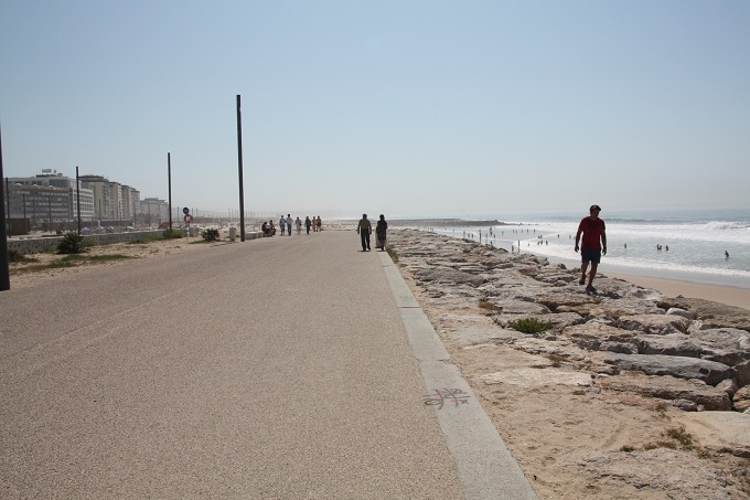 Heute Morgen sind wir mit dem Taxi die ca. 50 Km nach Costa da Caparica gefahren. Der Ort liegt auf der anderen Seite des Tejo ebenfalls wie Cascais am Atlantik. Es ist ein Badeort mit langen Sandstränden und einer belebten Innenstadt mit vielen Restaurants. Unser Hotel steht direkt an der Fußgängerzone im Zentrum. Der Strand wirkt noch etwas unfertig. Jedenfalls könnte man hier noch einiges tun.
