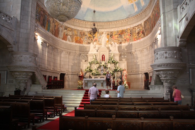 Es führt zwar eine Kabinenbahn hinauf. Wir bevorzugen aber die Fahrt mit dem Auto. Oben angekommen sehen wir, wie beeindruckend die Kirche wirklich ist.