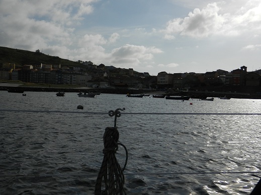 Gegen 20.00 Uhr erreichen wir den Hafen von Laxe. In der Bucht ist hinter der Kaimauer die Welle nicht mehr zu bemerken. In Laxe gibt es aber keine Stegliegeplätze. Wir machen das Schiff an einer Mooringtonne fest die im Hafenbecken ausgelegt ist. Diese Tonnen sind über eine Kette oder starkes Tau an einem Betonblock auf dem Grund des Wassers verankert und erlauben ein sicheres liegen.