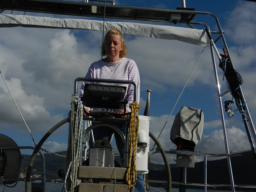 Der erste Teil der Strecke geht wieder gegen den Wind mit Motor. Aber sowohl der Wind als auch die Welle hqaben nachgelassen. Es ist eine angenehme Fahrt. Nach der halben Strecke ändert sich der Kurs auf Ost und wir setzen die Genua (Vorsegel). Mit dem Fahrtwind durch die Motorfahrt haben wir ca. 10 Knoten Wind, das sind 3 - 4 Bft. Wir machen gute Fahrt.