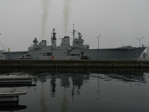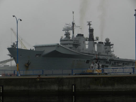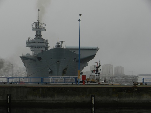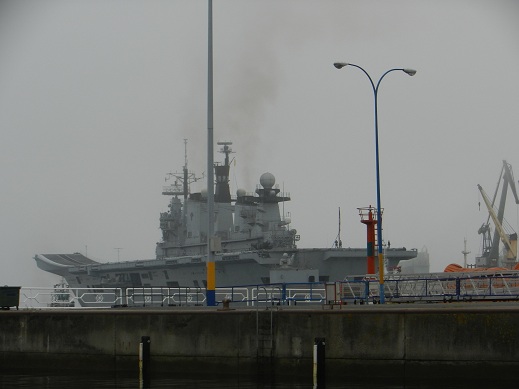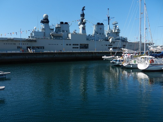 Seit gestern liegen wir nun in dem Hafen. Er ist nicht sehr voll. Aber an der den Hafen begrenzenden Kaimauer für Großschiffe liegt ein englischer Flugzeugträger.