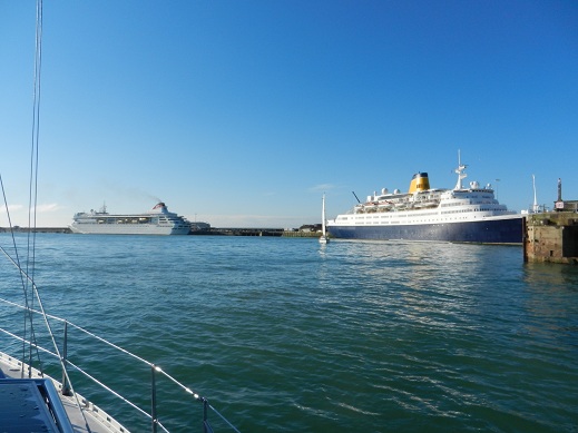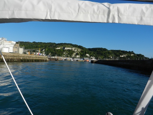 Draußen empfängt uns strahlend blauer Himmel und Sonnenschein. Wir legen ab und erfragen von Dover Control, ob wir auslaufen können. Die Freigabe wird uns umgehend erteilt. Wir werfen einen letzten Blick auf den Hafen.
