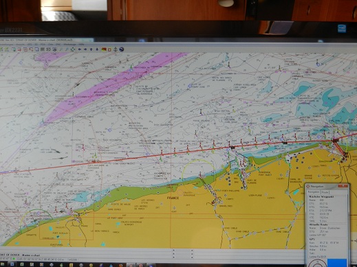 Aber schließlich haben wir die Verkehrstrennungsgebiete passiert und fahren in die bereits vor Calais betonnte Fahrrine nach Dünkirchen ein.