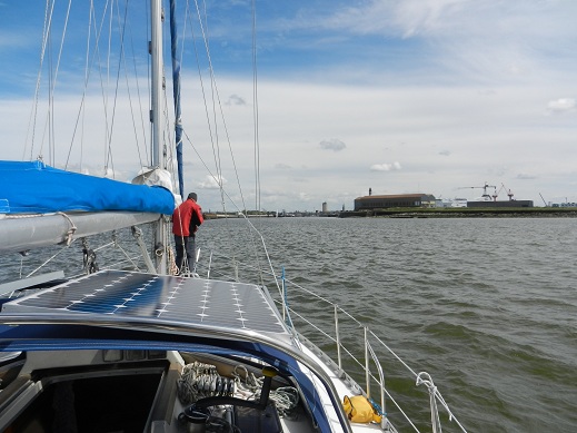 Vor dem Hafen setzen witr die Segel. Allerdings müssen wir den Motor weiterlaufen lassen, da uns die 8 kn Wind allein nicht ausreichen um voran zu kommen.
