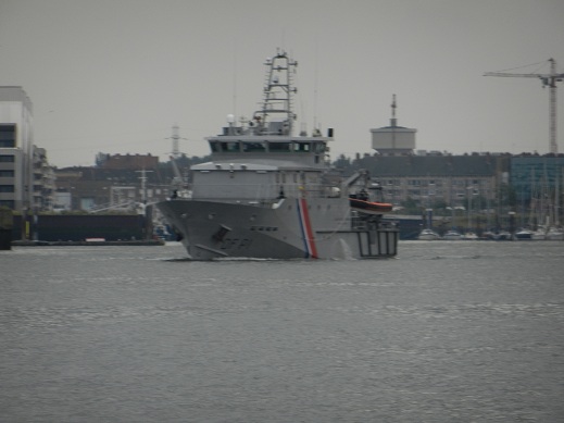 Ach du meine Güte. Nur nicht jetzt auch noch eine Kontrolle. Aber das Schiff läuft nach der Hafenausfahrt nach Süden und wir nach Norden.