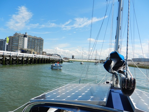 Da die Strecke heute nur ca. 35 sm weit ist, kommen wir bereits gegen 14.00 Uhr vor dem Hafen Blankenberge an. Die Zufahrt zum Hafen ist durch eine Dalbenmole gesichert.