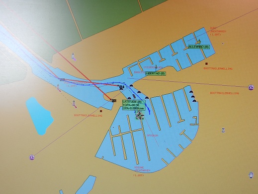 Das reizt uns nicht so sehr. An unserer blauen Spur sieht man unseren Liegeplatz im neuen Hafen.