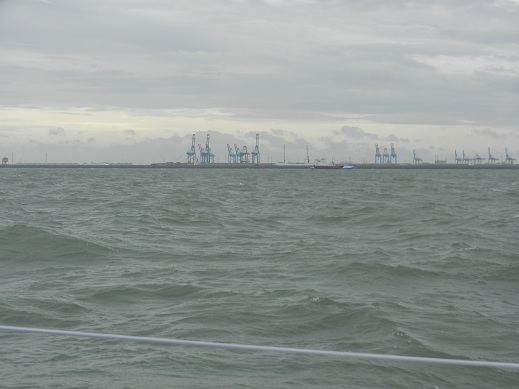Von Zeebrugge sehen wir nur einige Krähne die am Containerhafen stehen.
