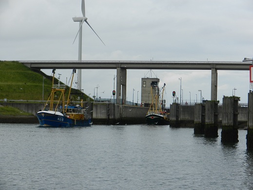 Gegen 8.20 Uhr waren wir vor der Schleuse aus der uns zwei Fischerboote entgegen kamen.