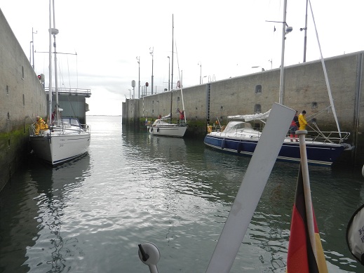 Da kaum Wind herrscht, haben wir diesmal kein Problem mit der Schleuse. Gemeinsam mit einigen anderen Schiffen fahren wir ein.