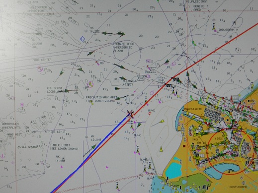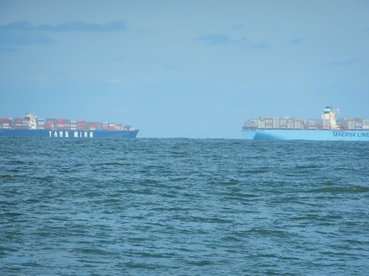 Die beiden Containerschiffe laufen vor uns in den Hafen ein - gut dass sie weg sind. Dann mußten wir noch einem hereinkommenden und zwei herausfahrenden Schiffen durch entsprechende Kursänderungen ausweichen,
