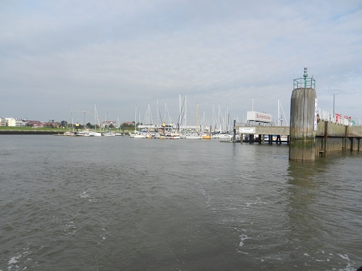 Danach verlassen wir den Hafen. Vorne rechts ist der Anleger der Tankstelle