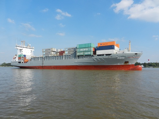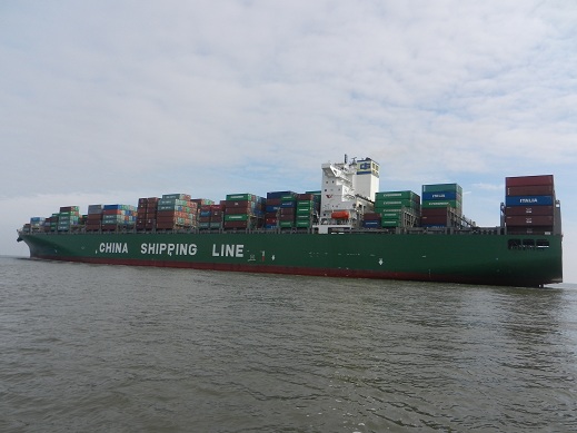Vor unserem Schiff begegnet es dann dem mittlerweile am weitesten verbreiteten Frachtschiff, dem Containerschiff.
